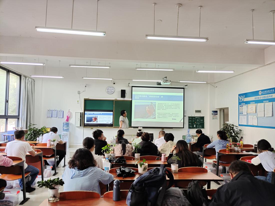 活动中,工程与信息学院院长郝永坤就新修订的职业教育法结合习近平总书记关于教育的重要论述展开讲述,重点讲解了新修订的职业教育法提出的一系列制度举措,以及职业教育是类型教育而不是层次教育的新定位,强调深入领会加强党对职业教育的全面领导这一根本要求,领会就业导向、多元办学、产教融合等新制度、新举措及其重大意义。