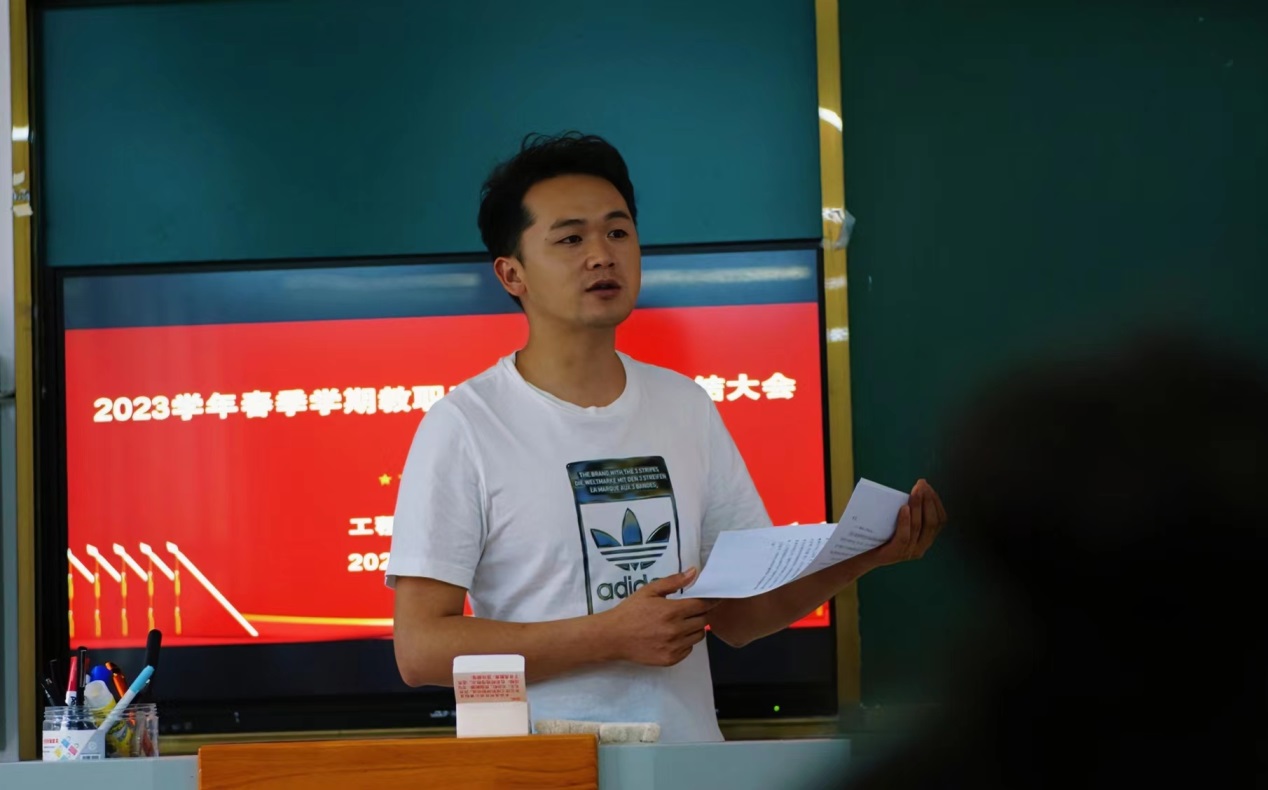 郝永坤院长对学院2023年春季学期重点工作成果进行了总结并详细说明学校考核标准,从强化思想认知到强化党建工作,从认真做好专业建设到实训室建设,从夯实就业工作到持续推进招生工作,从提升高质量实习工作到推进学风建设。学院奋进发展的同时也面临巨大挑战,郝院长希望全院教职工能够聚焦学院重点工作,强化责任担当意识,牢记提升学习技能之要,进一步提高教育教学质量。应在党建引“领”、宣传做“精”、常规做“细”等工作板块狠下功夫,并且提出学院要力推“三个五”学生教育管理模式,即五个空间、五个结合、五种能力,进一步做好、做细、做实学生“三全育人”管理工作,落实立德树人根本任务,不断提升学院内涵与实力,共同开启工程与信息学院崭新的未来,写好教育的“奋进之笔”。