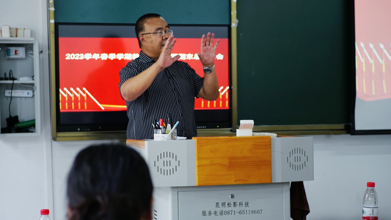 星光不问赶路人,时光不负有心人,为总结学期工作、加强团体合力、推动未来发展,7月10日中午,我院2023春季学期教职工大会暨期末总结大会在7-103教室举行。学院领导班子成员出席会议,全体教职工参加会议,会议由学院院长郝永坤主持。